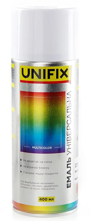 Інформація про продукт "Емаль акрилова універсальна RAL 9010 Білий глянець 400мл Unifix (941030)"