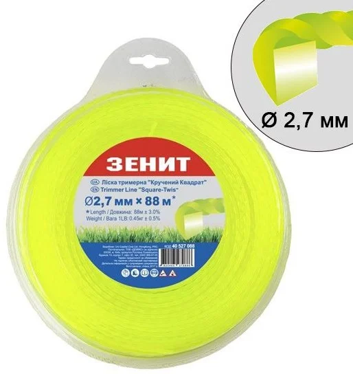 Інформація про продукт "Ліска для тримерів Зенит (кручений квадрат) Ø2.4 мм L114 м"