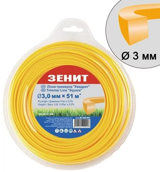 Інформація про продукт "Ліска для тримерів Зенит (квадрат) L392 м Ø2.4 мм"