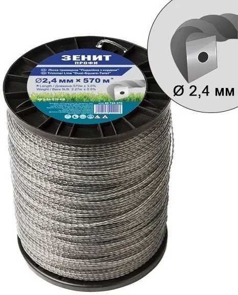 Інформація про продукт "Ліска для тримерів Зенит Профит (кручений квадрат з кордом) Ø3.0 мм L730 м"