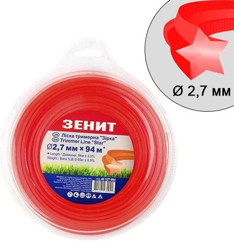 Інформація про продукт "Ліска для тримерів Зенит (зірка) Ø2.7 мм L274 м"