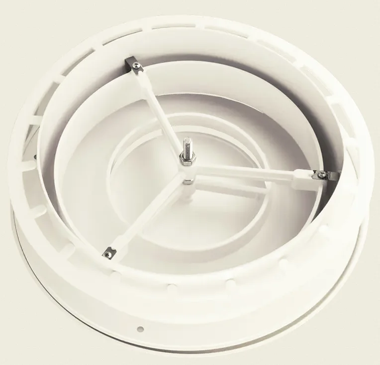 - Простий монтаж і налаштування — кріпильна система з фланцем та лапками дозволяє швидко встановити анемостат у підвісну стелю або стіну, а регулювання зазору дає змогу точно налаштувати витрату повітря.
