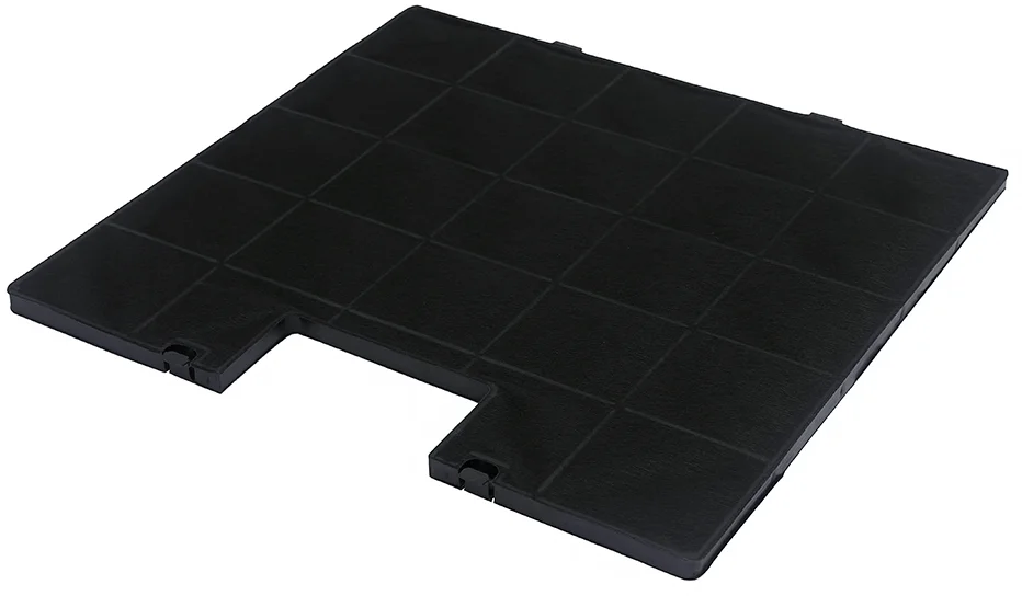 Фільтр виконаний з активованого вугілля, що забезпечує ефективне поглинання запахів, жиру та пари під час роботи кухонної витяжки. Конструкція призначена для вбудованих у меблі моделей, що дозволяє зберігати чистоту повітря без відведення його у вентиляційну шахту.