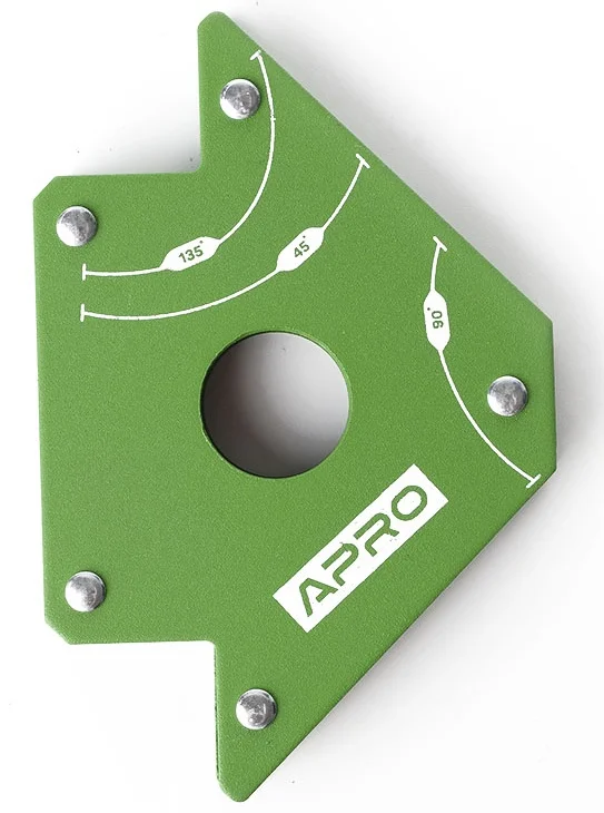 Модель Apro здатна утримувати деталі вагою до 22 кг, що робить її придатною для роботи як з невеликими, так і з більш масивними металевими конструкціями. Компактні розміри 90x90 мм забезпечують зручність у використанні та не перешкоджають доступу до зони зварювання.