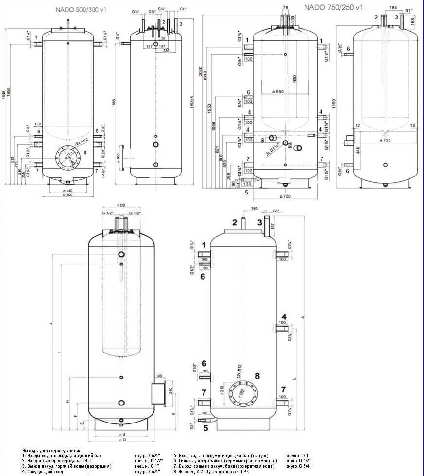 - Можливість розширення: Фланець з міжцентровою відстанню болтів 210 мм передбачений для монтажу фланцевого ребристого теплообмінника, а патрубки 6/4" можуть використовуватися для контурів опалення або встановлення електричного ТЕНа.