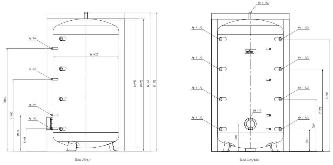- Ефективне накопичення тепла: Об'єм 1500 літрів дозволяє акумулювати значний обсяг теплової енергії.