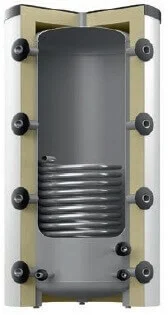 Накопичувач виготовлений з високоякісної сталі S235JRG2 (RSt 37-2), що гарантує його міцність та довговічність. Внутрішня поверхня бака не має обробки, тоді як зовнішня покрита енергозберігаючою плівкою PWF білого кольору. Теплоізоляція з м'якого поліуретану товщиною 100 мм мінімізує втрати тепла, підвищуючи енергоефективність системи.