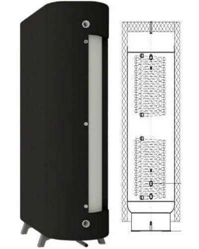 Модель об'ємом 800 л виконана у плоскій формі, що забезпечує зручність розміщення. Вона виготовлена з високоякісної сталі товщиною до 5 мм та оснащена якісним утеплювачем, що мінімізує тепловтрати. Теплоакумулятор балансує температуру в опалювальному приміщенні та захищає котел від перегріву. Підключення здійснюється між котлом та системою опалення, з можливістю розміщення патрубків входу та виходу теплоносія під кутом 0° або 180°.