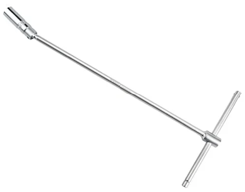 Свічковий ключ має Т-подібну знімну ручку та шарнірне з'єднання між подовжувачем і торцевою головкою розміром 16 мм, що забезпечує доступ до кріплень у важкодоступних місцях. Загальна довжина інструменту в зібраному вигляді становить 450 мм. Всередині головки розташований магнітний фіксатор, який надійно утримує свічу запалювання або іншу деталь під час установки чи демонтажу, запобігаючи її падінню.