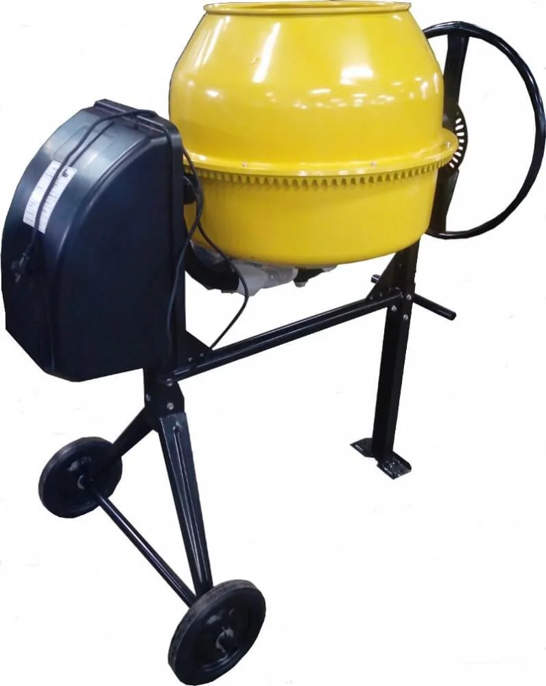 Фіксатор положення барабана дозволяє зручно вивантажувати готову суміш, а транспортувальні колеса спрощують переміщення бетономішалки по будівельному майданчику. Простота управління робить її доступною для широкого кола користувачів.