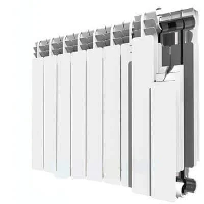 Конструкція біметалічного радіатора включає повністю сталевий колектор, який витримує тиск до 30 атмосфер, забезпечуючи високу надійність та довговічність. Алюмінієве оребрення, що не контактує з теплоносієм, швидко передає тепло повітрю, забезпечуючи ефективне опалення. Така комбінація матеріалів дозволяє радіатору працювати з водою будь-якої якості, без додаткових вимог до pH-фактора чи ступеня забрудненості. Секція складається з двох сталевих трубок, залитих під тиском алюмінієвим сплавом, що створює попередні напруги для компенсації температурної деформації та збереження постійної теплопередачі. Теплова віддача 155 Вт на секцію дозволяє опалювати площу до 1.4 м² на секцію.