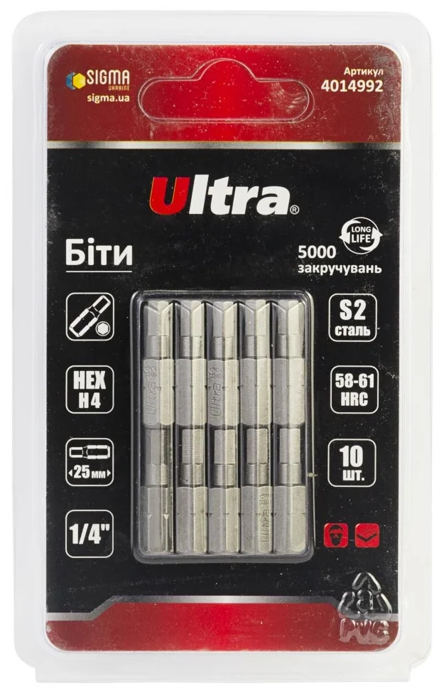 Інформація про продукт "Бита 1/4" L25мм HEX Н4 (10 шт.) Ultra (4014992)"