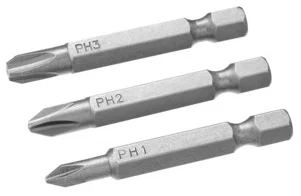 Набір складається з трьох біт з хрестоподібним наконечником типу PH довжиною 50 мм та стандартним хвостовиком 1/4". Біти призначені для ручного закручування та відкручування гвинтів за допомогою викруток або шуруповертів у безударному режимі.