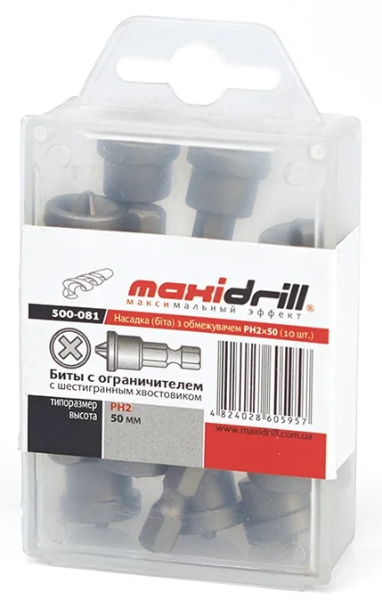 Інформація про продукт "Біта з обмежувачем 1/4" L50мм PH2 (кратно 10 шт.) Maxidrill (500-081)"