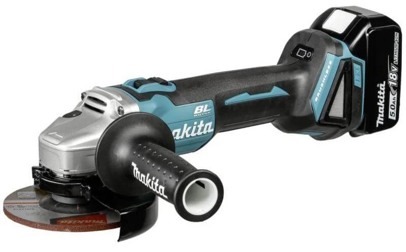 Електронна система обмеження струму з сигнальною лампою дозволяє безперервно використовувати інструмент, контролюючи навантаження на двигун. Система блокування із сигнальною лампою запобігає випадковому запуску при підключенні акумулятора та інформує про недостатній заряд. Живлення здійснюється від акумулятора 18 В / 5,0 А·год, що забезпечує тривалу автономну роботу. Діаметр диска 125 мм та кількість обертів 8500 об/хв дозволяють ефективно виконувати різання та шліфування різних матеріалів. Різьблення шпинделя М14 забезпечує сумісність зі стандартними аксесуарами. Додатково передбачена світлодіодна система підсвічування робочої зони.