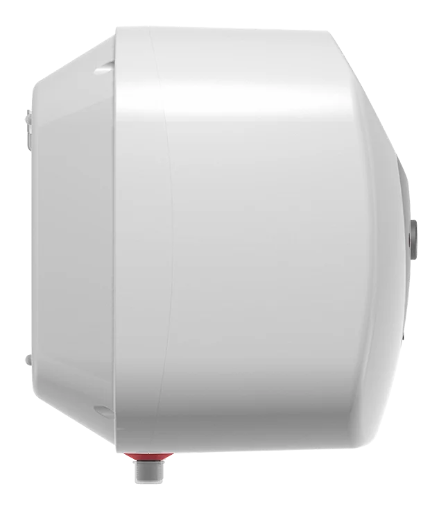 Внутрішній бак водонагрівача покритий біосклопорцеляною, що забезпечує високу еластичність, міцність та перешкоджає утворенню накипу, зберігаючи воду свіжою та чистою. Захист від корозії забезпечується магнієвим анодом, а безпека експлуатації підвищується завдяки захисту від перегріву та запобіжному клапану. Корпус прямокутної форми з пластику та шар пінополіуретанової ізоляції ефективно утримують тепло. Водонагрівач оснащений «мокрим» ТЕНом та має ступінь захисту від води IPX4. Призначений для вертикального встановлення над мийкою.