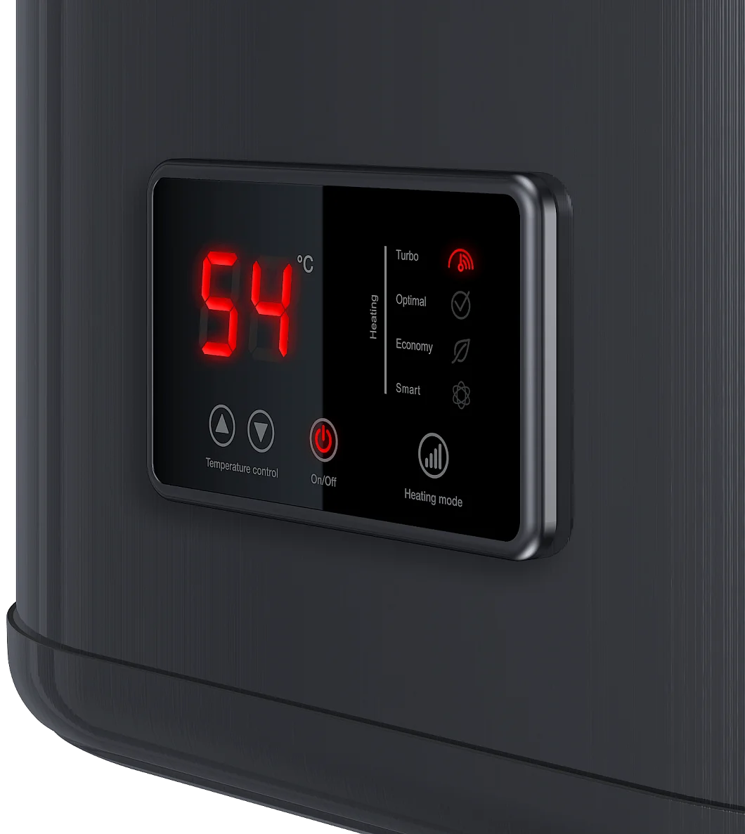 Модель оснащена двома "мокрими" ТЕНами загальною потужністю 2 кВт (0.7 + 1.3 кВт), що дозволяє швидко нагрівати воду до максимальної температури +75°С. Внутрішній бак виготовлений з нержавіючої сталі G.5, що гарантує високу стійкість до корозії та довговічність. Функція Smart Control оптимізує роботу водонагрівача, забезпечуючи комфорт та економію електроенергії, а сенсорна панель управління робить налаштування інтуїтивно зрозумілим.