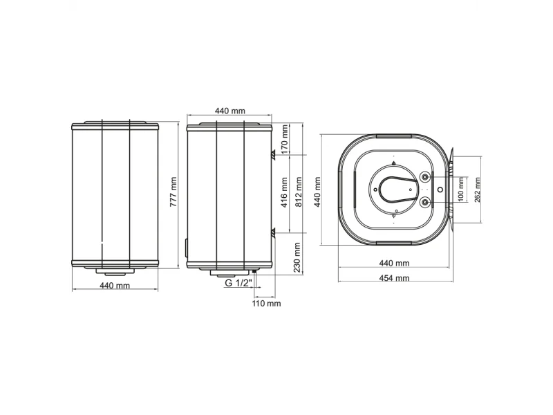 Пристрій має подвійну систему захисту від перегріву, захист від замерзання, від включення без води та від надлишкового тиску, а також ступінь захисту від води IP24. Габаритні розміри водонагрівача становлять 812x440x440 мм, а вага – 25 кг.