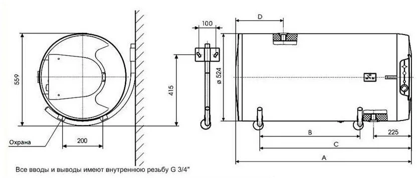 Захист: магнієвий анод, захист від перегріву, запобіжний клапан
