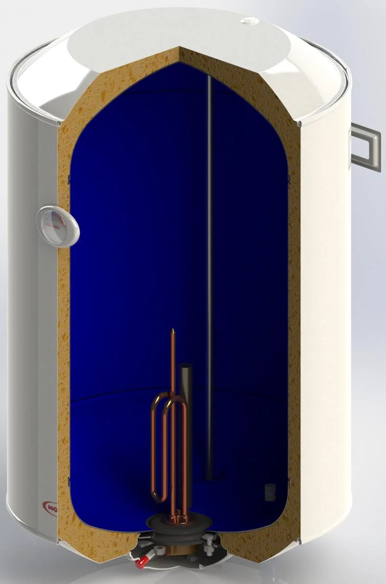 - Довговічність: Електричний блок, включаючи ТЕН, термостат та магнієвий анод, зібраний на масивному сталевому фланці, що гарантує міцність конструкції.