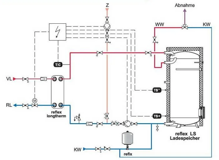 Накопичувальний бак Reflex LS 300 L призначений для зберігання значного запасу гарячої води питної якості, забезпечуючи об'єм 300 літрів. Цей підлоговий водонагрівач застосовується у поєднанні із зовнішнім теплообмінним апаратом, який не входить до стандартної комплектації.