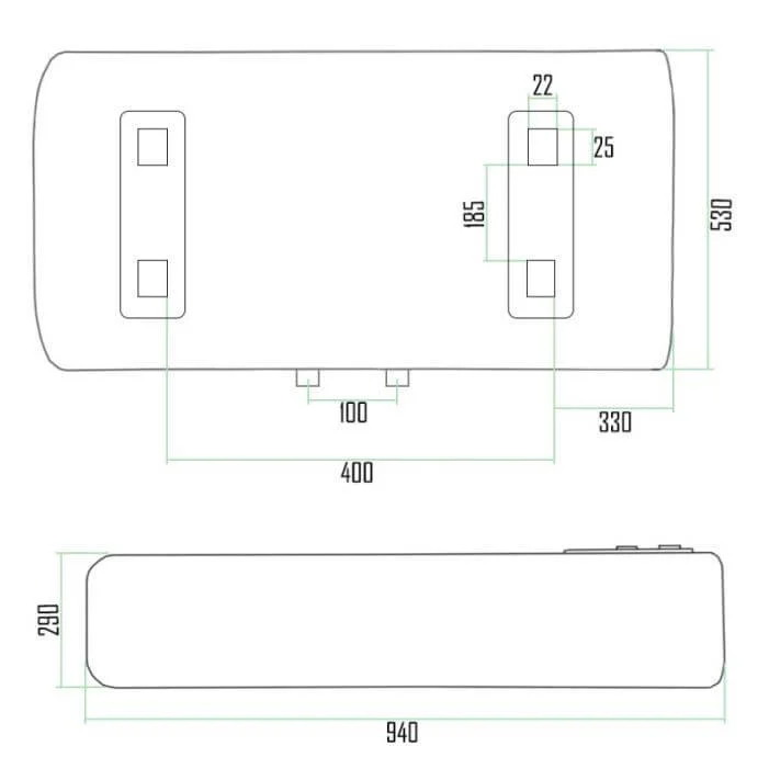 - Швидкий нагрів: Два ТЕНи загальною потужністю 2 кВт забезпечують швидке досягнення заданої температури води.