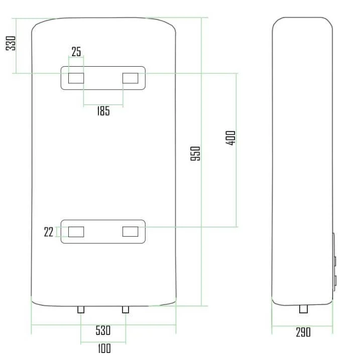 - Економія простору: Плоска форма та компактні розміри дозволяють інтегрувати бойлер у невеликі приміщення без створення громіздкості.