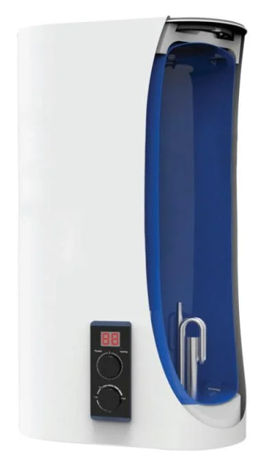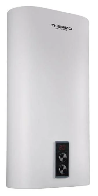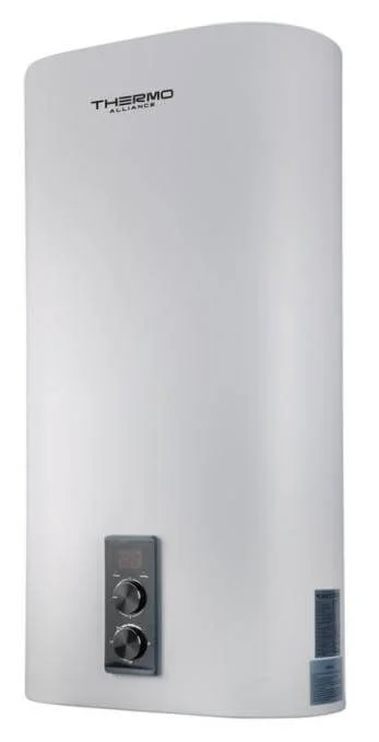 Плоский електричний водонагрівач Thermo Alliance DT80V20G(PD)-D об'ємом 80 літрів оснащений двома «сухими» ТЕНами загальною потужністю 2 кВт (800 Вт + 1200 Вт), що забезпечує швидкий нагрів води. Його компактна конструкція з глибиною до 290 мм і вертикальним встановленням є оптимальним рішенням для приміщень з обмеженим простором.