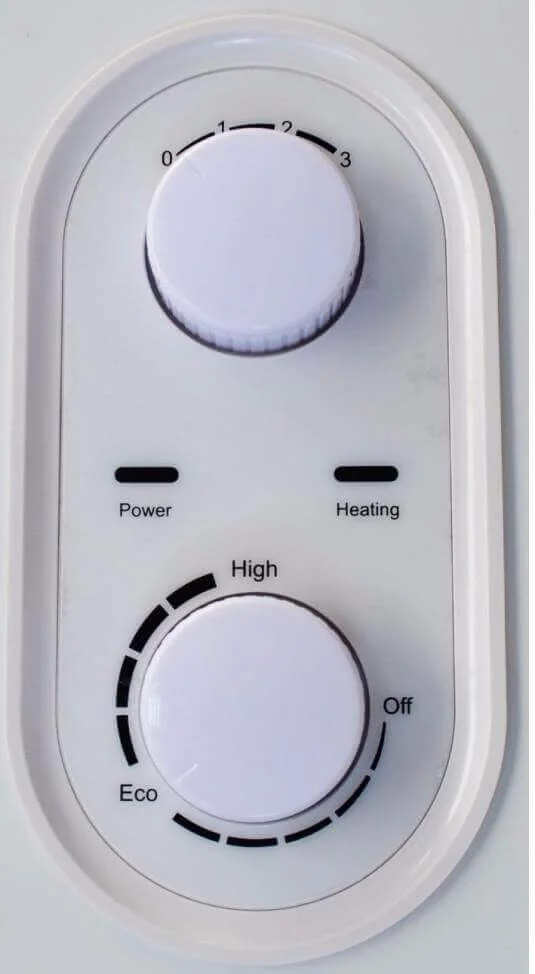 Нагрів води здійснюється за допомогою здвоєного «сухого» нагрівального елемента з нержавіючої сталі загальною потужністю 2000 Вт (800 + 1200 Вт). Перевагою «сухого» ТЕНа є його захист від прямого контакту з водою, що подовжує термін служби та спрощує обслуговування. Навіть у разі виходу з ладу одного з нагрівальних елементів, водонагрівач продовжує функціонувати. На панелі керування розташовані трипозиційний регулятор потужності, терморегулятор та світлові індикатори нагріву та живлення.