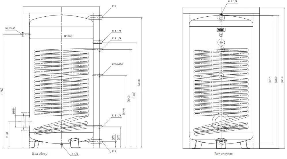 - Можливість підключення ТЕНа: Додаткова муфта Rp1½ дозволяє встановити електричний ТЕН, що розширює можливості використання водонагрівача та забезпечує резервне джерело нагріву.