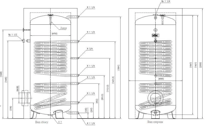 - Оптимізовано для теплових насосів: Збільшений змійовик теплообмінника забезпечує високу ефективність роботи в системах з тепловими насосами.