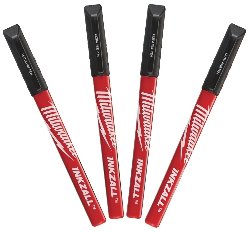 Надтонкий циліндричний наконечник діаметром приблизно 0,6 мм дозволяє робити точні та чіткі позначки. Маркери Milwaukee INKZALL у наборі з чотирьох штук призначені для детальної розмітки на невеликих поверхнях, зокрема на електричних проводах та архітектурних кресленнях.
