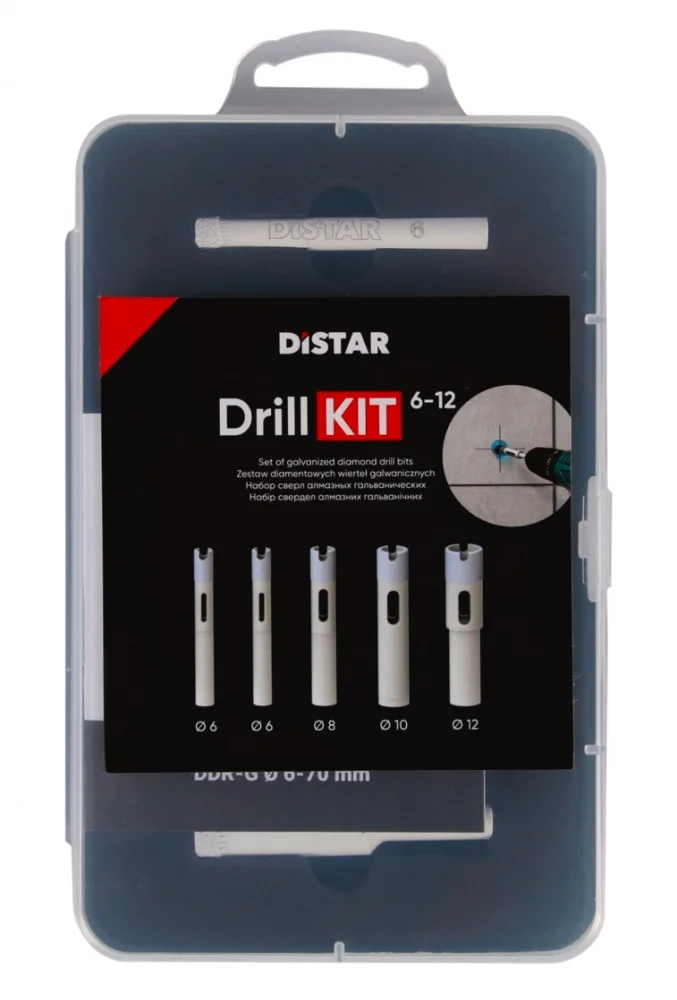 Комплект Distar DrillKIT 6-12 є спеціалізованим інструментом для установки сантехніки, електричних розеток або інших елементів, що потребують акуратних отворів у твердих облицювальних матеріалах. Він забезпечує чисті краї без сколів, що важливо при фінальній обробці.