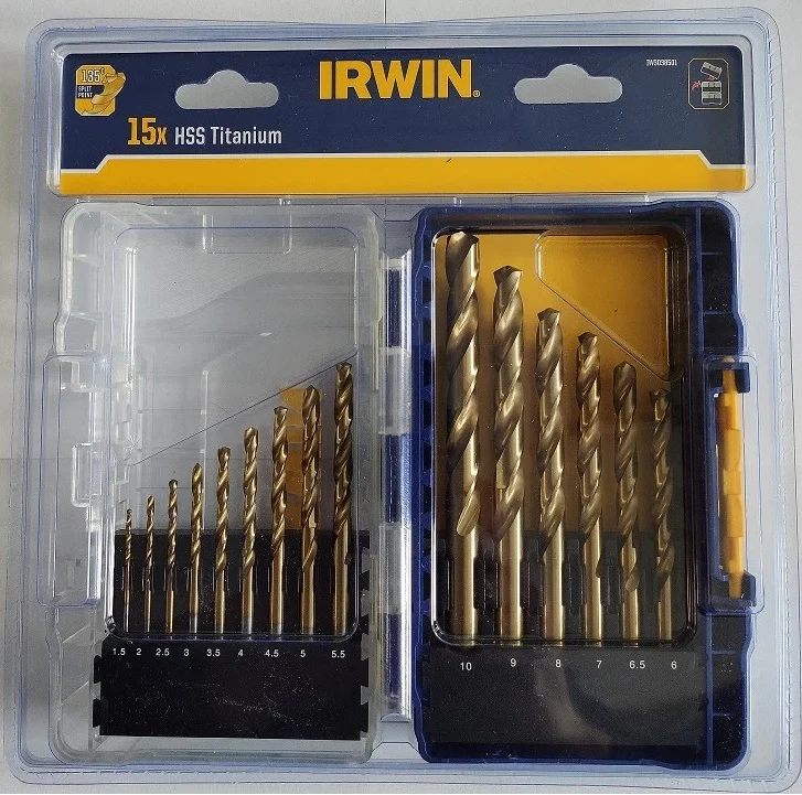 - Організоване зберігання: Свердла розміщені в фірмовому пластиковому кейсі Irwin, що захищає інструмент від пошкоджень і втрат, а також полегшує транспортування.