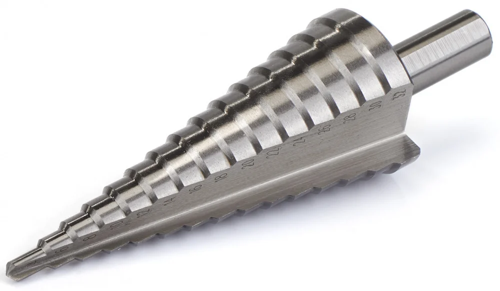 - Точність та контроль: Чітке маркування діаметрів на кожному ступені допомагає точно дотримуватися заданих розмірів отвору, що важливо при монтажних та слюсарних роботах.