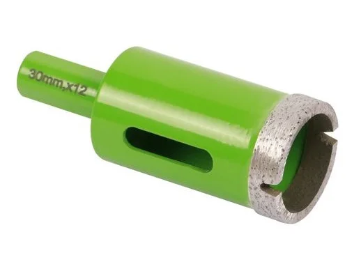 Алмазне корончасте свердло призначене для сухого свердління з обов'язковим водяним охолодженням у твердих кам'яних матеріалах. Конструкція з циліндричним хвостовиком 12 мм забезпечує сумісність з більшістю електродриль потужністю від 600 Вт, обладнаних регулятором обертів.
