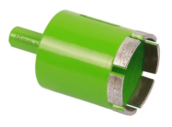 Алмазне корончате свердло діаметром 46 мм призначене для створення точних отворів у твердих матеріалах, таких як граніт, мармур, керамограніт та керамічна плитка. Конструкція з алмазним напиленням забезпечує високу швидкість роботи та акуратний різ без сколів по краях. Для експлуатації необхідне водяне охолодження, яке знижує нагрів інструмента та продовжує його ресурс.