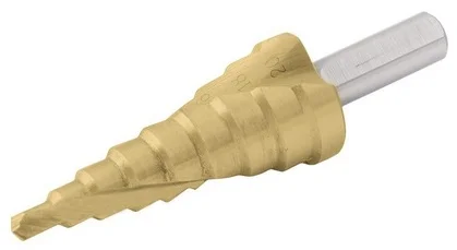 Ступінчаста конструкція дозволяє створювати отвори дев'яти різних діаметрів — від 4 до 20 мм — за допомогою одного інструмента. Виготовлене з швидкоріжучої сталі HSS з покриттям нітриду титану (TiN), свердло має підвищену зносостійкість і зменшує тертя. Твердість 63–65 HRC забезпечує стійкість до навантажень при роботі з металом.
