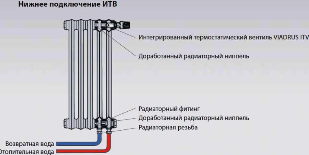- Універсальність підключення: Можливість бічного підключення, а також нижнього з інтегрованим термостатичним вентилем.