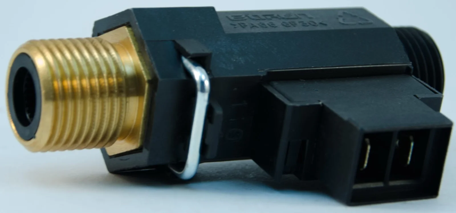 Датчик протоку води призначений для контролю руху теплоносія у контурі гарячого водопостачання газових котлів. Пристрій виготовлений з поліаміду, армованого скловолокном (PA 66GF30), що забезпечує стійкість до високих температур та тиску у системі. Основна функція полягає у подачі сигналу на плату управління котла при відкритті крана гарячої води, що ініціює підпал горелки та початок нагріву.