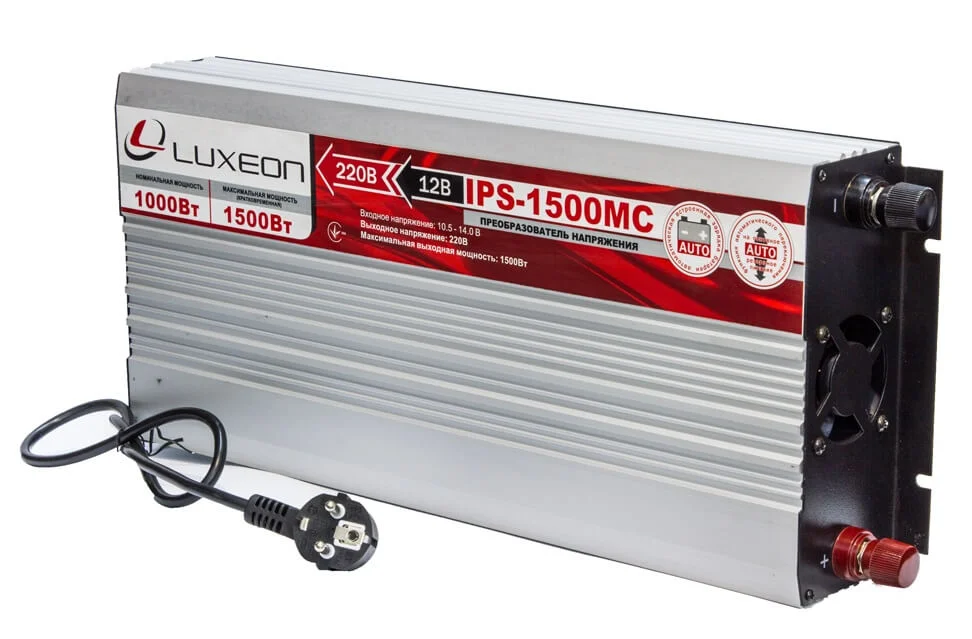 Перетворювач напруги Luxeon IPS-1500MC призначений для забезпечення автономного живлення електроприладів від акумуляторної батареї 12 В. З номінальною електричною потужністю 1000 Вт та піковою до 1500 Вт, цей пристрій ефективно перетворює постійний струм на змінний з модифікованою синусоїдою. Мікропроцесорне керування забезпечує стабільну роботу та надійний захист підключеного обладнання.