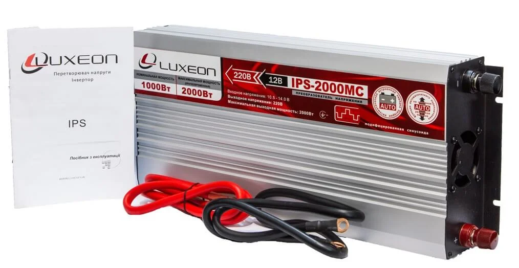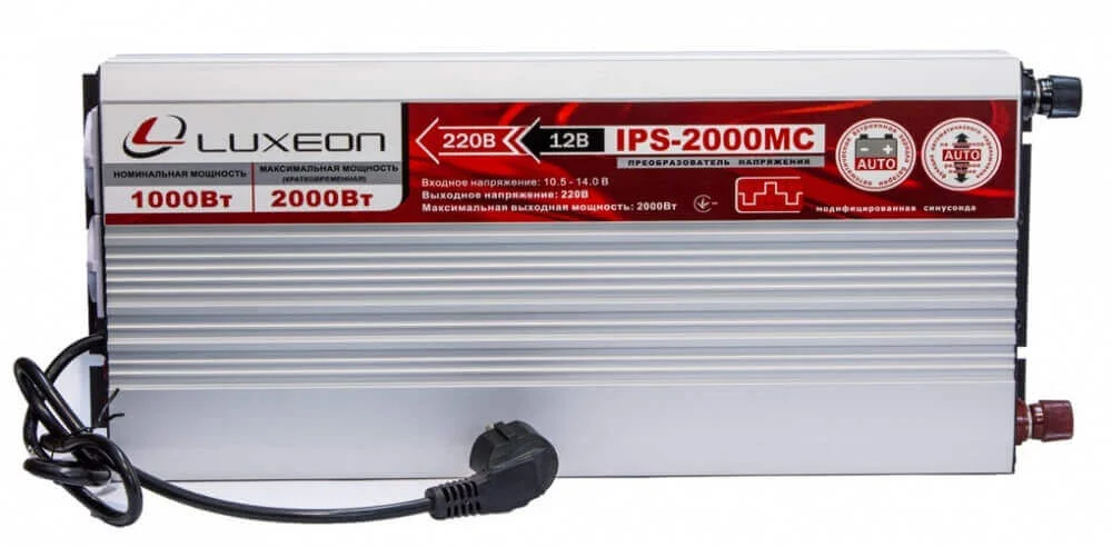 Перетворювач напруги Luxeon IPS-2000MC призначений для забезпечення автономного живлення електроприладів від акумуляторної батареї 12 В, перетворюючи постійний струм на змінний з вихідною напругою 220 В. Ця модель генерує модифіковану синусоїду, що робить її оптимальним рішенням для більшості побутових приладів, які не вимагають чистої синусоїдальної форми напруги, таких як зарядні пристрої, ноутбуки, телевізори, лампи освітлення та більшість електроінструментів.