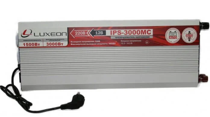Перетворювач напруги Luxeon IPS-3000MC призначений для трансформації постійного струму 12 В у змінний струм 220 В з номінальною потужністю 1500 Вт та піковою до 3000 Вт. Цей пристрій генерує вихідну напругу у формі модифікованої синусоїди, що робить його оптимальним для живлення більшості побутових приладів, які не є чутливими до форми сигналу, таких як освітлення, зарядні пристрої, комп'ютерна техніка та телевізори.