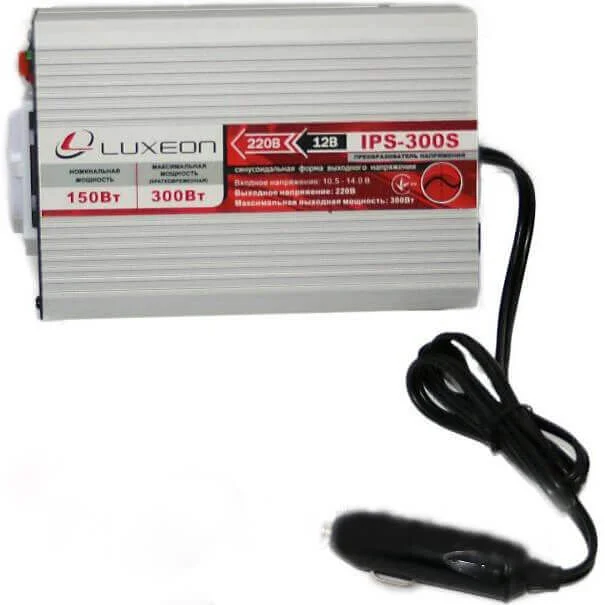 Перетворювач напруги Luxeon IPS-300S забезпечує стабільне живлення з правильною синусоїдальною формою вихідної напруги, що є критично важливим для коректної роботи чутливої електроніки, такої як опалювальні котли, циркуляційні насоси, ноутбуки та інша побутова техніка. Пристрій перетворює постійний струм 12 В від акумуляторних батарей або автомобільного прикурювача на змінний струм 220 В з частотою 50 Гц, надаючи номінальну потужність 150 Вт.