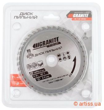 - Кількість зубців, шт - 40 / твердосплавні напайки з карбіду вольфраму HRC 89-90 / товщина диска - 1,2 мм / товщина пропила - 2,4 мм