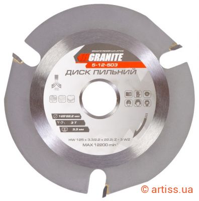 - Кількість зубців, шт - 3 / твердосплавні напайки з карбіду вольфраму HRC 89-90 / товщина диска - 2,2 мм / товщина пропила - 3,3 мм