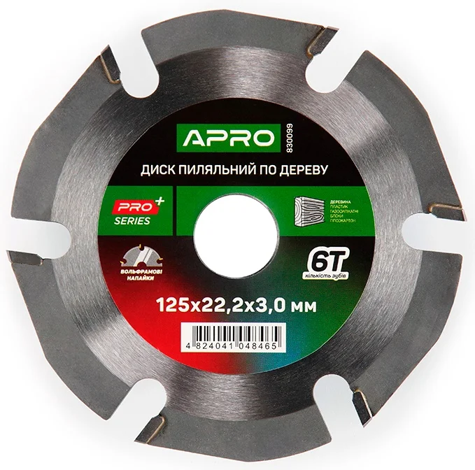 Інформація про продукт "Диск пильний по дереву з твердосплавними напайками 125х22.2мм 6Т APRO (830099)"
