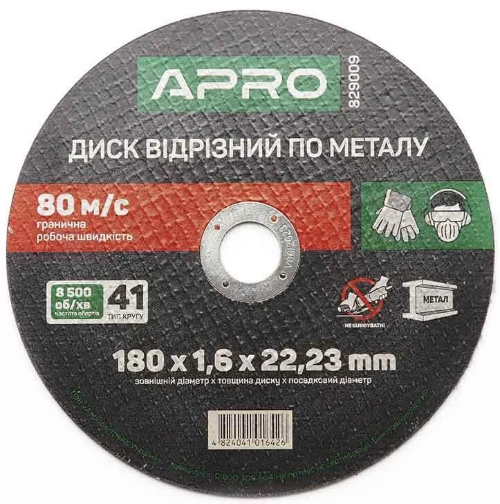 Інформація про продукт "Диск відрізний по металу 180х1,6х22,22мм (кратно пачці - 5 шт) Apro (829009)"
