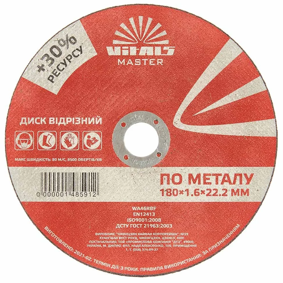 Інформація про продукт "Диск відрізний по металу 180х1,6х22,22мм Vitals Master (148591)"