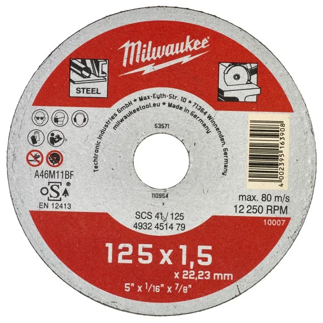 Інформація про продукт "Диск відрізний по металу Milwaukee SCS 41/125х1.5 (4932451479)"